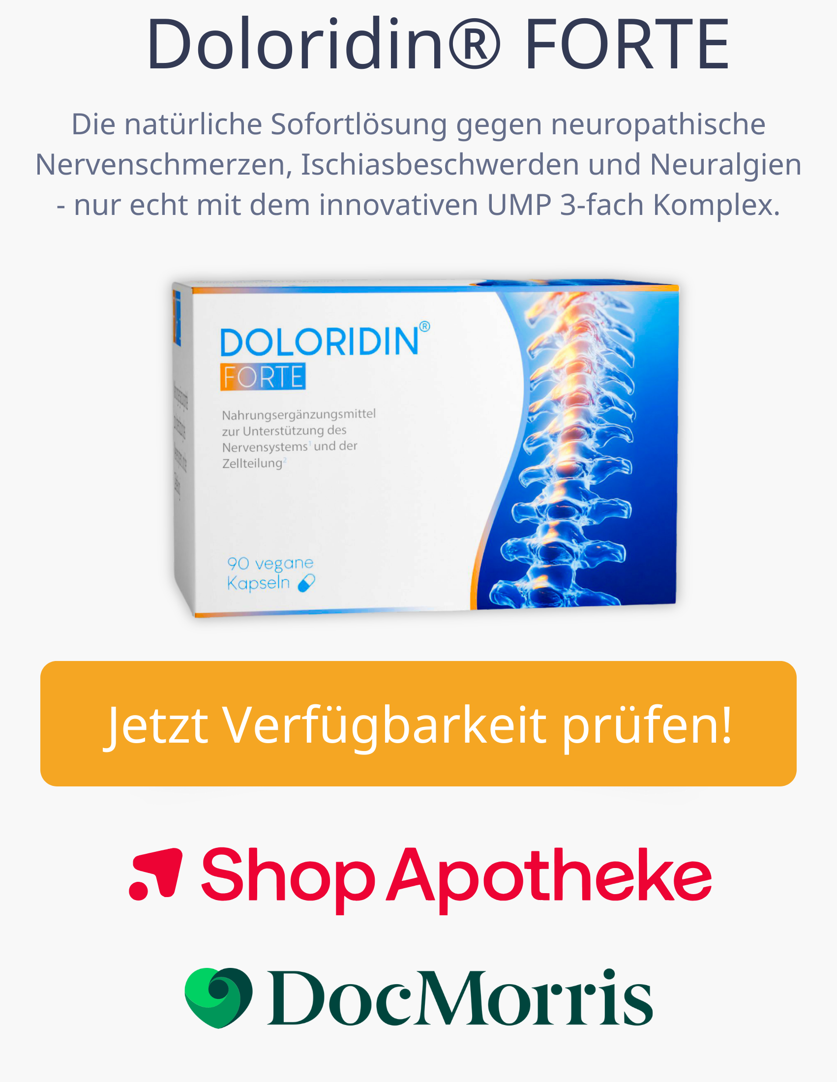 Kurz gesagt: Doloridin Forte gibt Ihren Nerven genau das, was sie brauchen, um sich selbst zu reparieren – und Ihnen mehr Lebensqualität zurückzugeben.